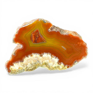 This one-of-a-kind Laguna Agate not only showcases stunning chromatography, but also boasts a unique central pattern that is rarely found in agate specimens. Get ready to be mesmerized!